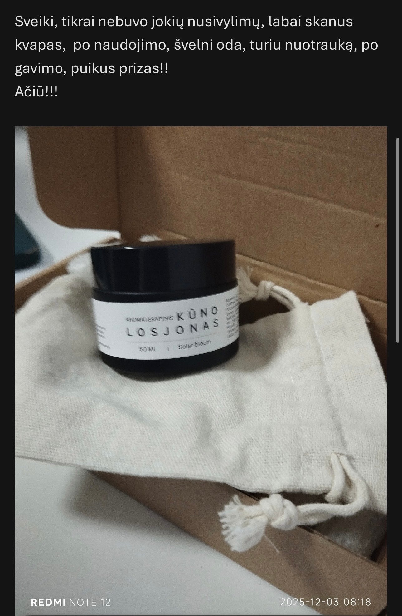 Oda, kuri gali būti savimi. Ne dirbtinai "pataisyta", o natūraliai palaikyta. Ne priversta atrodyti "tobulai", o leidžiama būti sveikai. Losjonas greitai įsigeria, nepalieka riebalų sluoksnio ir leidžia odai kvėpuoti. Tai kasdienė antibeauty beauty rutina – minimalistiška, sąžininga ir veiksminga.